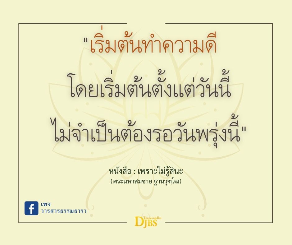 เริ่มต้นทำความดี และปฏิบัติตนอย่างที่แนะนำไว้ โดยเริ่มต้นตั้งแต่วันนี้ ไม่จำเป็นต้องรอวันพรุ่งนี้ ทุกสิ่งทุกอย่าง ความสำเร็จจะเกิดขึ้นในชาตินี้แน่นอน...