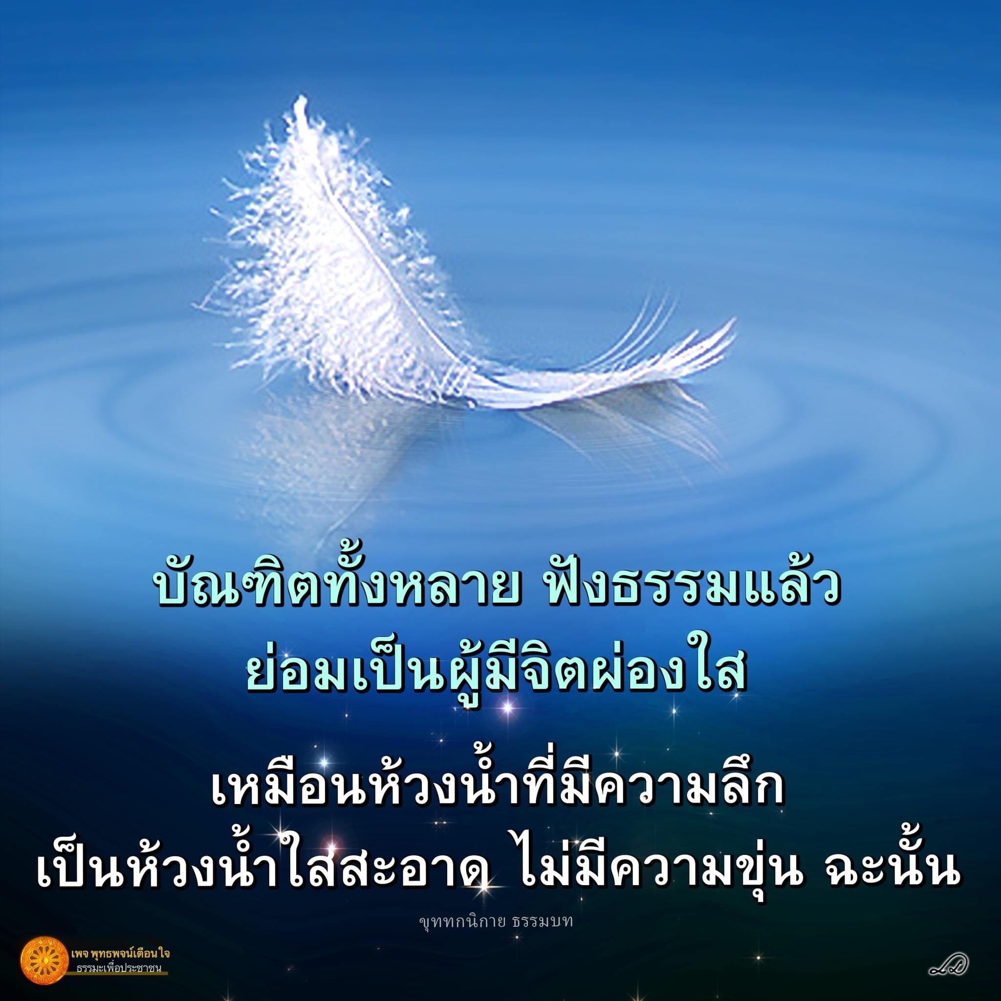 “บัณฑิตทั้งหลาย ฟังธรรมแล้ว ย่อมเป็นผู้มีจิตผ่องใส เหมือนห้วงนํ้าที่มีความลึก เป็นห้วงนํ้าใสสะอาด ไม่มีความขุ่น ฉะนั้น" ขุททกนิกาย ธรรมบท