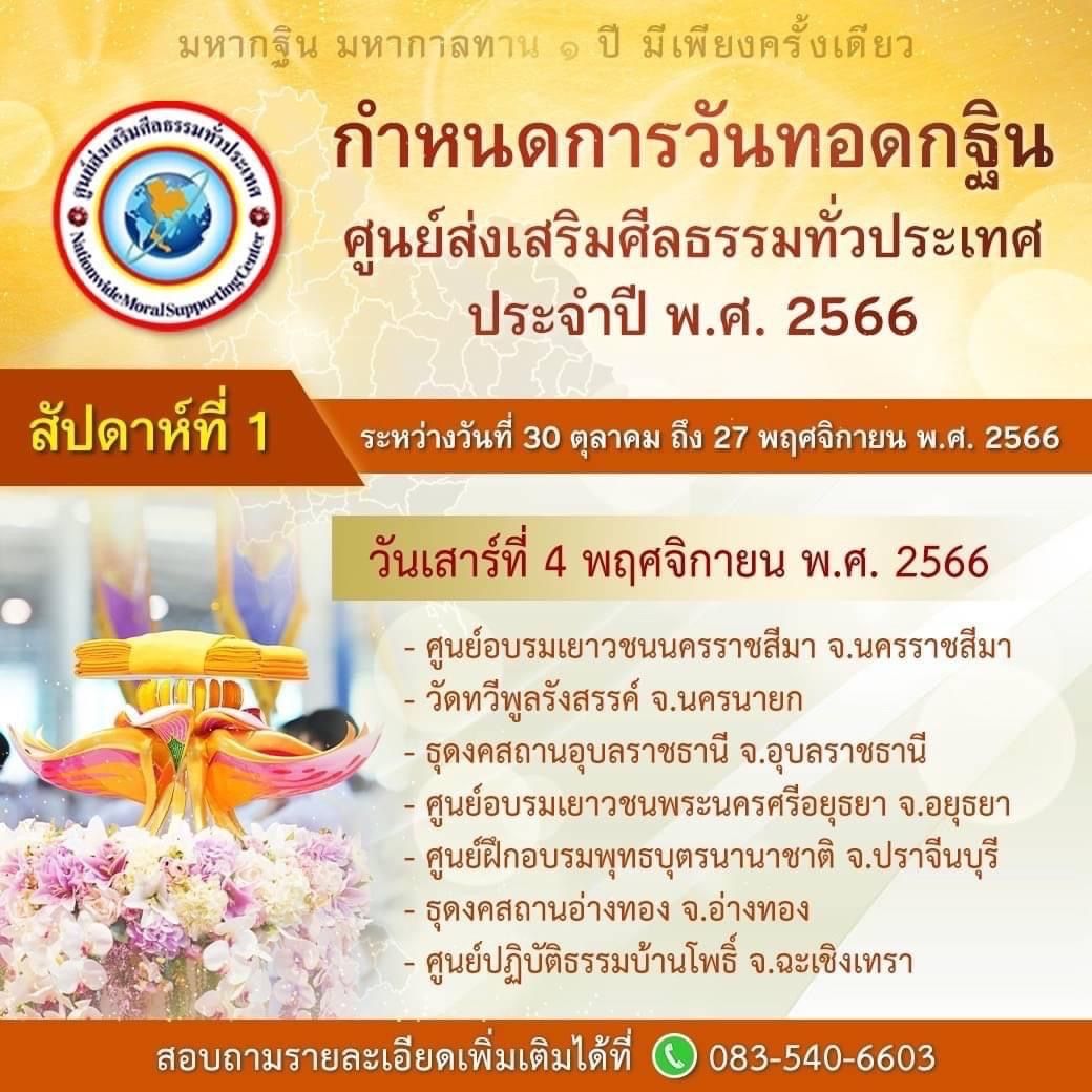 กำหนดการทอดมหากฐิน ๑๑๙ ศูนย์ส่งเสริมศีลธรรมทั่วประเทศ