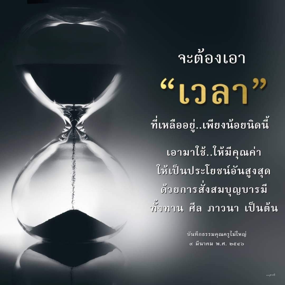 เรามีเวลาอยู่ในโลกนี้จำกัด จำกัดจริงๆ ที่ผ่านมาก็ทิ้งเปล่าไปเสียตั้งเยอะ เพิ่งสร้างบารมีกันไปได้นิดๆ หน่อยๆ และเวลาที่เหลืออยู่เท่าไร ก็ไม่รู้ นิดเดียวจริงๆ