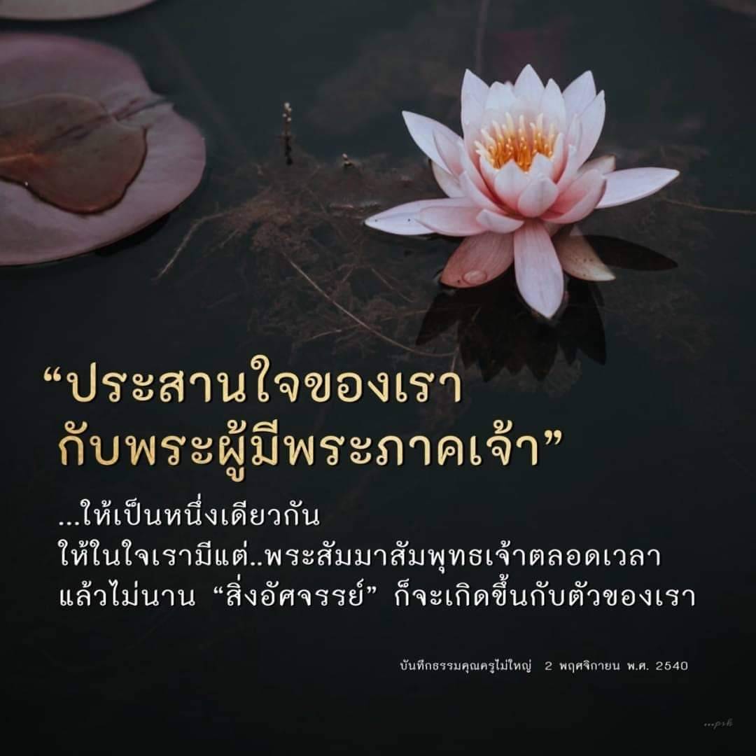 ประสานใจของเรา กับพระผู้มีพระภาคเจ้า ให้เป็นหนึ่งเดียวกัน ให้ในใจเรามีแต่พระสัมมาสัมพุทธเจ้าตลอดเวลา แล้วไม่นานสิ่งอัศจรรย์ ก็จะเกิดขึ้นกับตัวของเรา