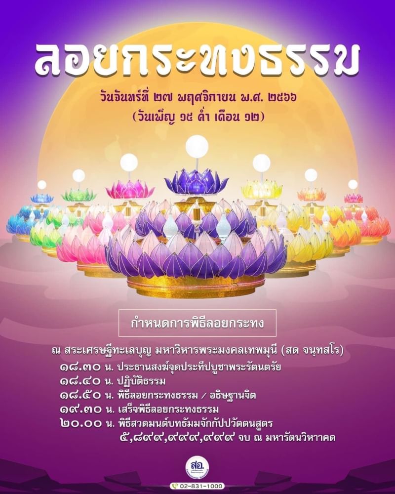 ลอยกระทงธรรม วันเพ็ญ 15 ค่ำ เดือน 12