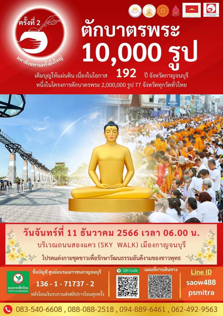 ขอเชิญร่วมตักบาตรพระ 10,000 รูป จังหวัดกาญจนบุรี