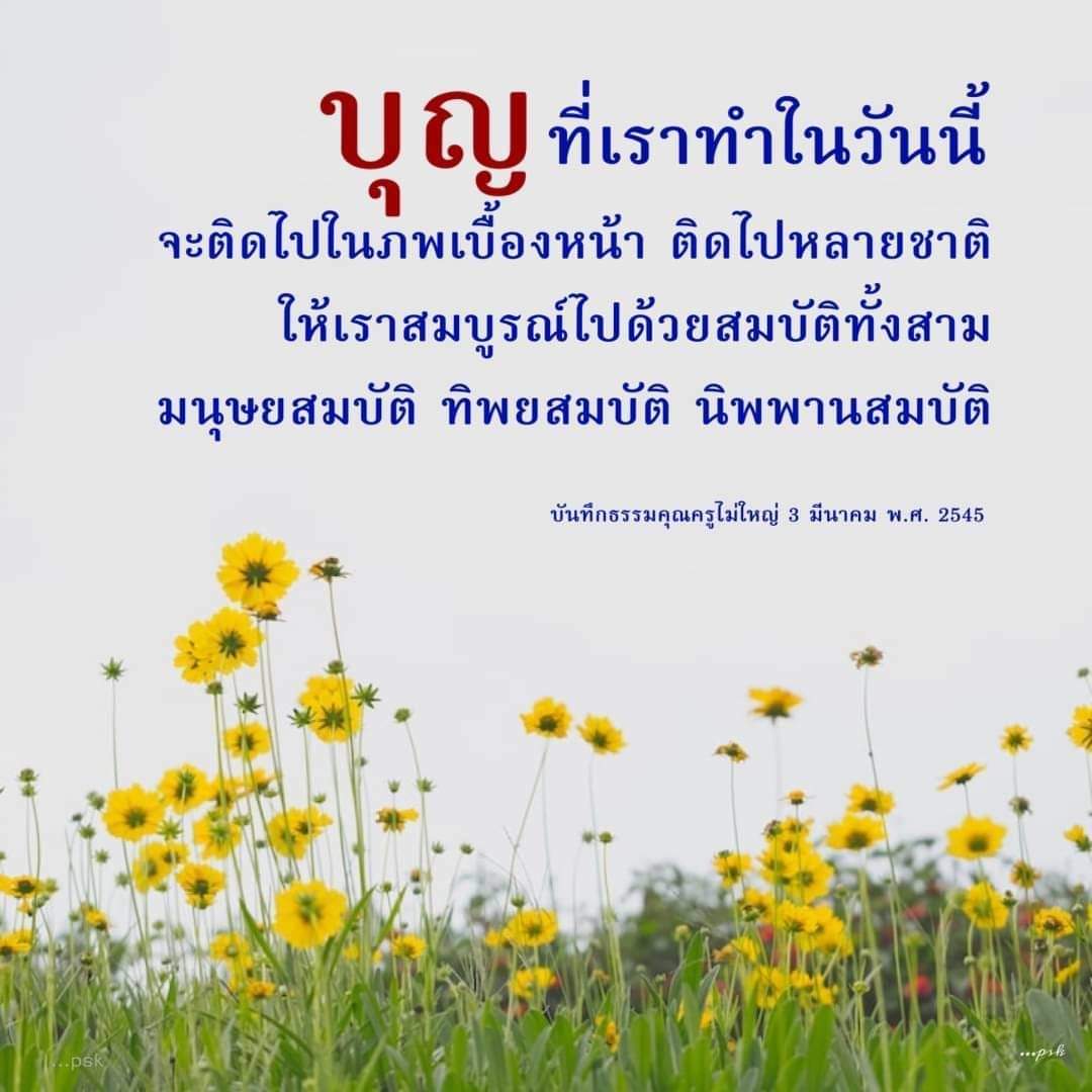 บุญที่เราทำในวันนี้ จะติดไปในภพเบื้องหน้า ติดไปหลายชาติ ให้เราสมบูรณ์ไปด้วยสมบัติทั้งสาม มนุษยสมบัติ ทิพยสมบัติ นิพพานสมบัติ