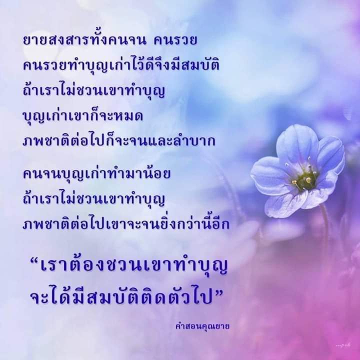 ยายสงสารทั้งคนจน คนรวย คนรวยทำบุญเก่าไว้ดีจึงมีสมบัติ ถ้าเราไม่ชวนเขาทำบุญ บุญเก่าเขาก็จะหมด ภพชาติต่อไปก็จะจนและลำบาก