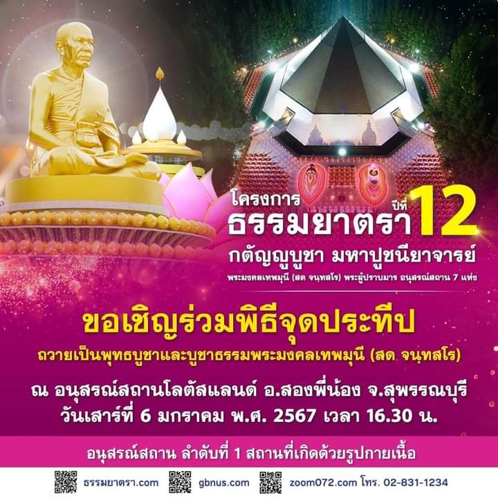 กราบเรียนเชิญ ทุกๆ ท่าน มาทอดผ้าป่า 140 วัด ที่ศูนย์ โรตัสแลนด์ และ จุด ประทีป เป็น พุทธบูชา ในโครง การ ธรรมยาตรา ครั้งที่ 12 ด้วยกันนะคะ