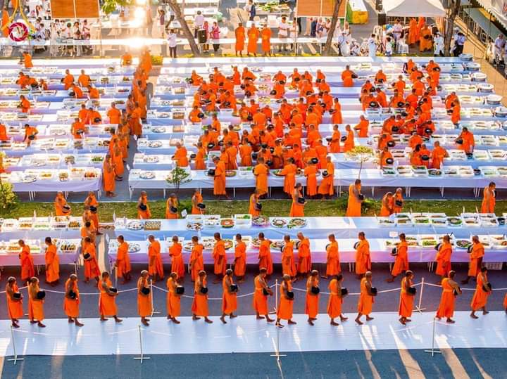 “ ผู้มีบุญถวายภัตตาหารพระธรรมยาตรา ทั้งหมดอยู่ในสายตาสวรรค์ ชาวสวรรค์อยากมาทำแบบนี้ แต่ทำไม่ได้ ได้แต่อนุโมทนาบุญ ซึ่งชาวสวรรค์คอยจ้องอนุโมทนาบุญ ท้องฟ้าไม่ได้ว่างเลย ท้องฟ้าเป็นชุมชนสวรรค์แออัด เพราะจะมาเอาบุญ จะมาชื่นชมอนุโมทนาสาธุการกับเจ้าภาพทุกคน ”