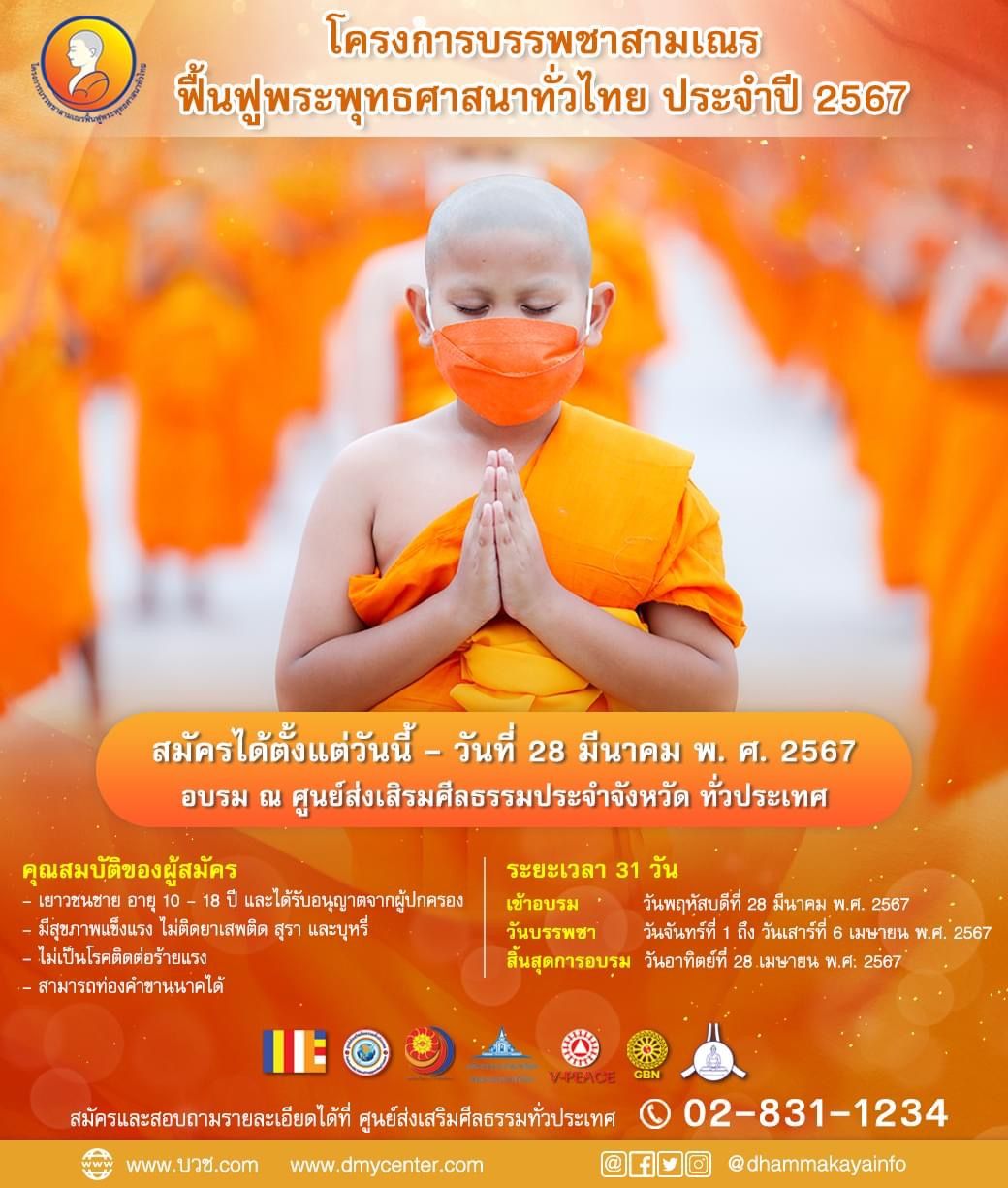 ในโครงการบรรพชาสามเณรฟื้นฟูพระพุทธศาสนาทั่วไทย ประจำปี 2567