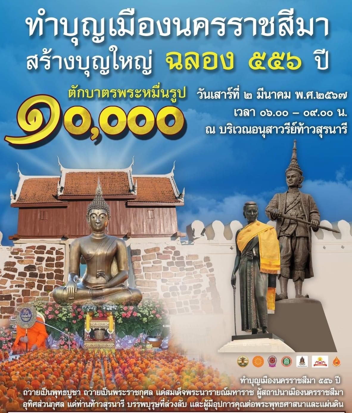 ตักบาตรพระ 10,000 รูป ฉลองเมืองโคราช 556 ปี