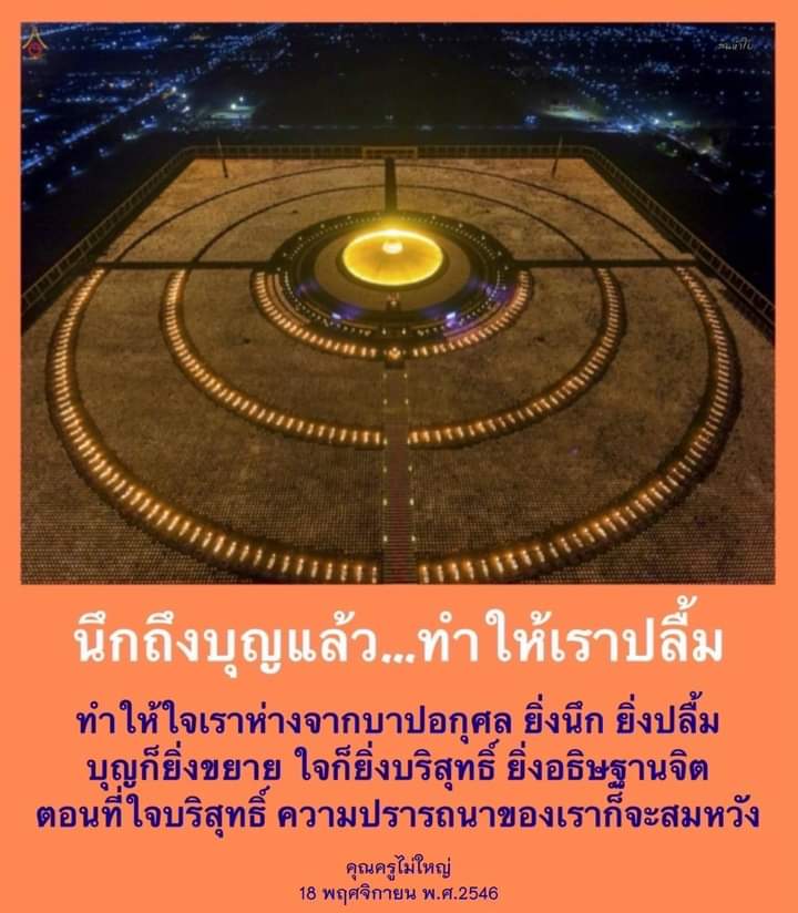 ••• แต่นึกถึงบุญแล้ว ทำให้เราปลื้ม ทำให้ใจเราห่างจากบาปอกุศล ยิ่งนึก ยิ่งปลื้ม บุญก็ยิ่งขยาย ใจก็ยิ่งบริสุทธิ์ ยิ่งอธิษฐานจิต ตอนที่ใจบริสุทธิ์ ความปรารถนาของเราก็จะสมหวัง