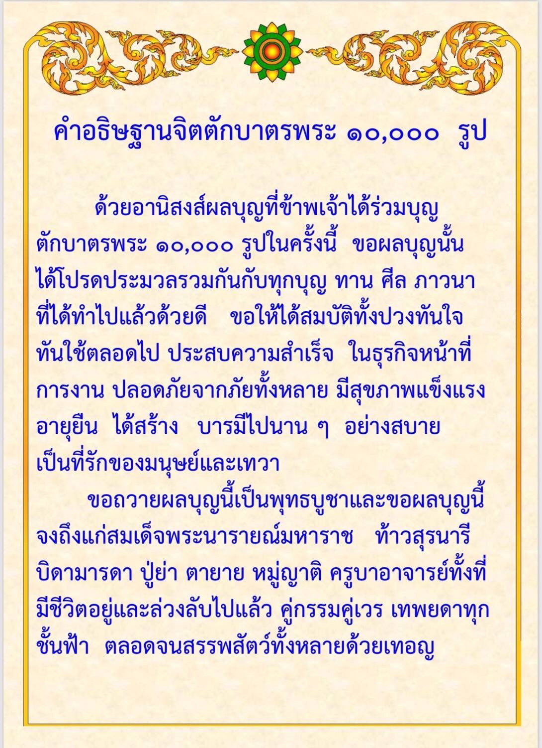 คำอธิษฐานตักบาตรพระ 10,000 รูป