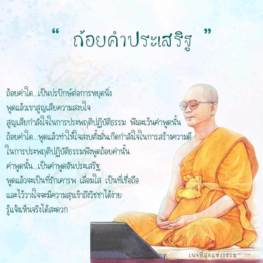 ถ้อยคำใด...พูดแล้วทำให้ใจสงบตั้งมั่นเกิดกำลังใจในการสร้างความดี ในการประพฤติปฏิบัติธรรมพึงพูดถ้อยคำนั้น