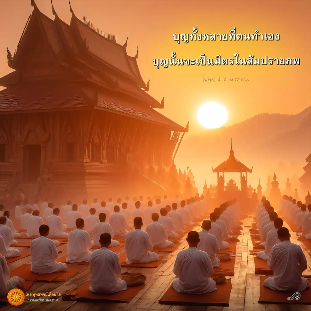 “บุญทั้งหลายที่ตนทำเอง บุญนั้นจะเป็นมิตรในสัมปรายภพ“ (พุทฺธ) สํ. ส. ๑๕/ ๕๑.