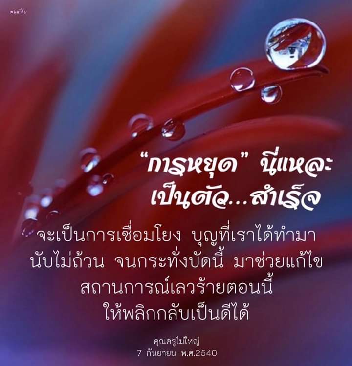 ••• เพราะฉะนั้น บุญก็ไม่ได้ช่อง ไม่ได้โอกาส บาปมันได้ช่องมากกว่า วิบัติบาปศักดิ์สิทธิ์มันก็เข้าแทรก ดังนั้นการหยุดนี่แหละเป็นตัวสำเร็จ จะเป็นการเชื่อมโยงบุญที่เราได้ทำมานับไม่ถ้วน จนกระทั่งบัดนี้ มาช่วยแก้ไขสถานการณ์เลวร้ายตอนนี้ ให้พลิกกลับเป็นดีได้