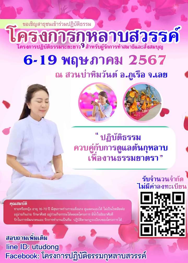มาร่วมปฏิบัติธรรมฝึกทั้งหยาบและละเอียดควบคู่กันไป มอบความสุขให้ตัวเราเอง มอบของขวัญที่ดีที่สุดให้หลวงพ่อ พร้อมสานฝันความตั้งใจแรกของท่านที่อยากให้ "ตลอดเส้นทางของธรรมยาตราเต็มไปด้วยกลีบกุหลาบ"