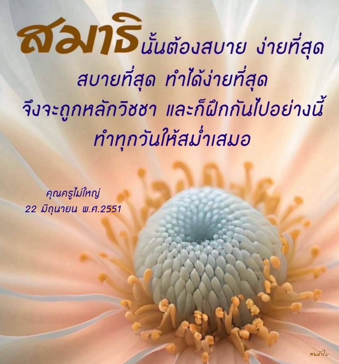 ••• เพราะเป็นตำแหน่งแห่งความบริสุทธิ์ความสุขปัญญาเลิศ ความรอบรู้ที่ไม่มีประมาณ อานุภาพที่เรานึกไม่ถึง ต้องนำใจกลับมาสู่ตรงนี้ทุกวัน ทั้งวัน ควบคู่กับภารกิจประจำวันอย่างสบาย ๆ ใจของเราก็จะได้ใส ๆ ละเอียดอ่อน นิ่งแน่น นุ่มนวล ควรแก่การงาน