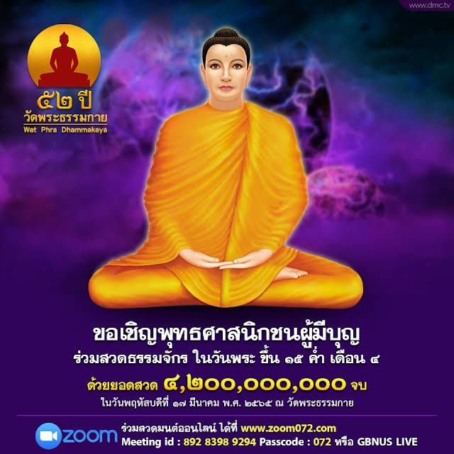 ร่วมสวดมนต์ออนไลน์ ได้ที่ www.zoom072.com