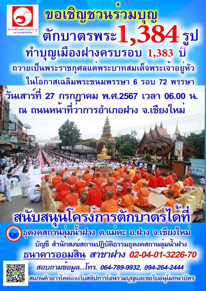 ขอเชิญชวนร่วมบุญตักบาตรพระ1,384 รูป