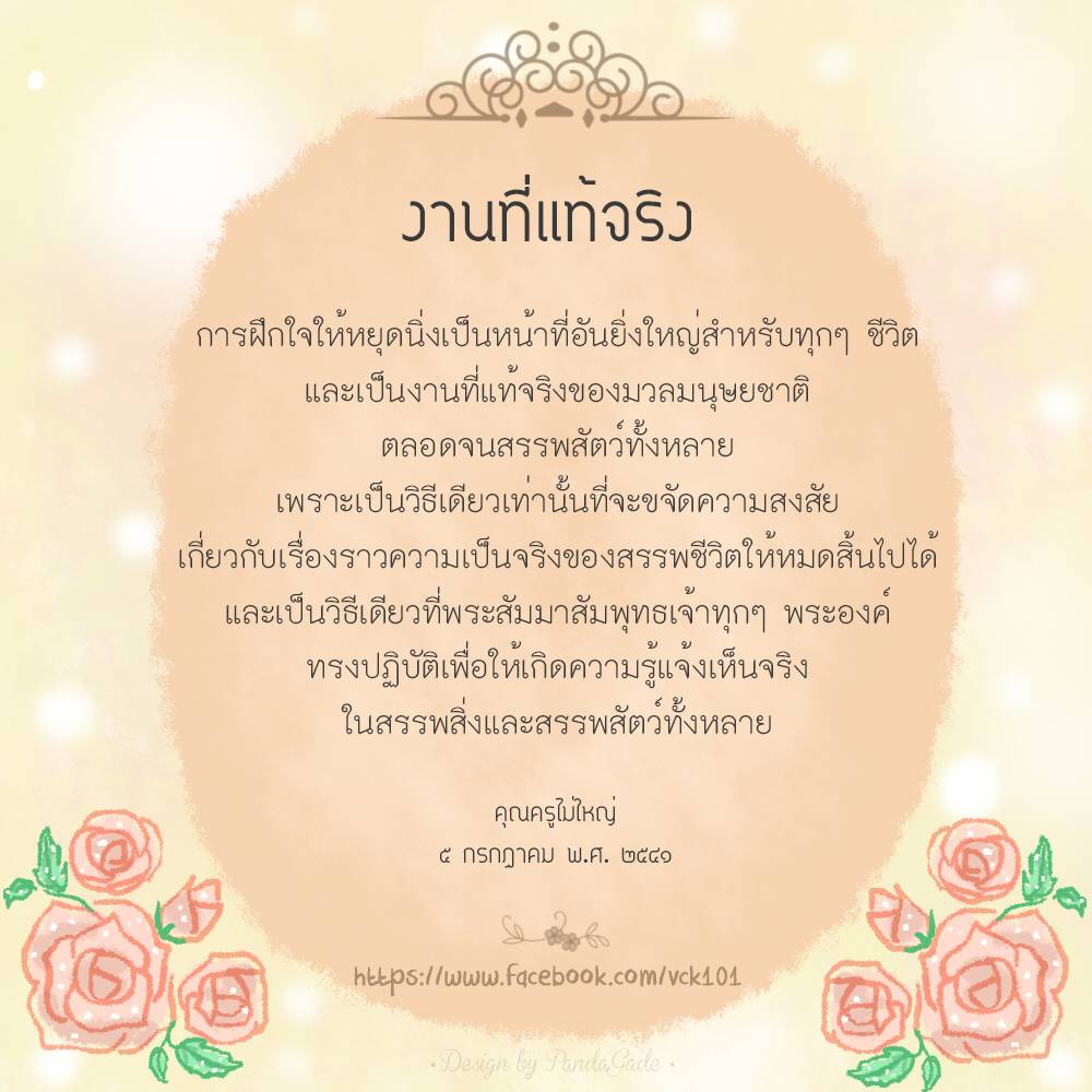 การฝึกใจหยุดนิ่งเป็นหน้าที่อันยิ่งใหญ่สำหรับทุกๆชีวิต และเป็นงานที่แท้จริงของมนุษย์ชาติ