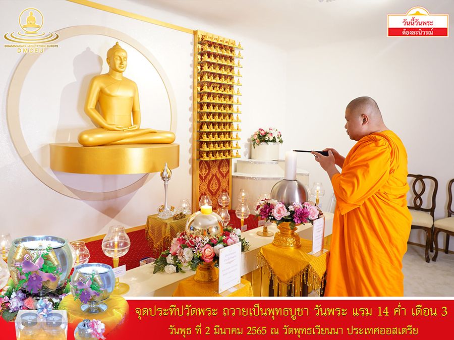 วัดพุทธเวียนนา ประเทศออสเตรีย ได้จัดพิธีจุดประทีป เนื่องในวันพระ เพื่อถวายเป็นพุทธบูชา