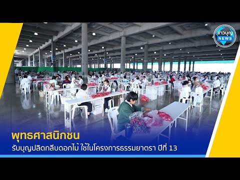 พุทธศาสนิกชน รับบุญปลิดกลีบดอกไม้ ใช้ในโครงการธรรมะยาตราปีที่ 13 (4:25)