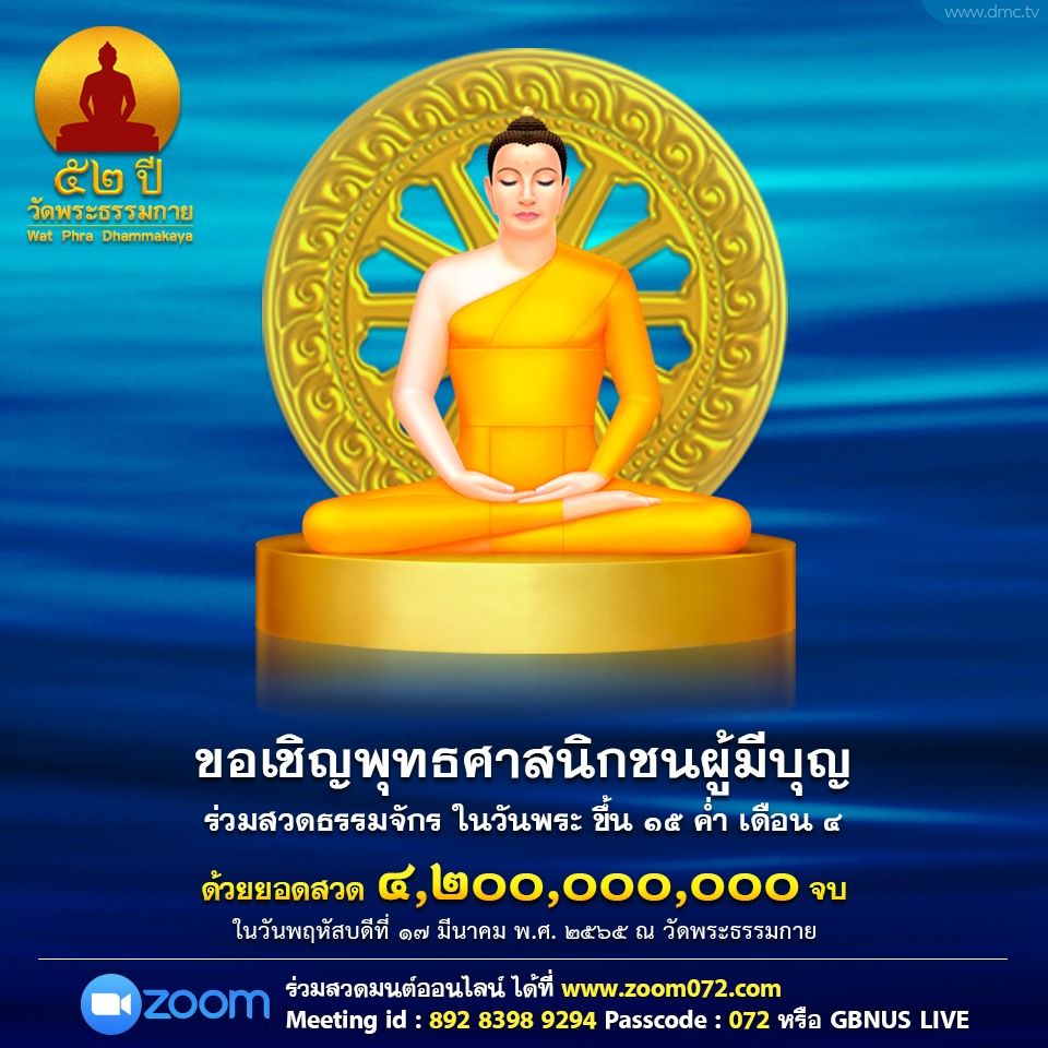 ร่วมสวดธรรมจักร ในวันพระ ขึ้น ๑๕ ค่ำ เดือน ๔
