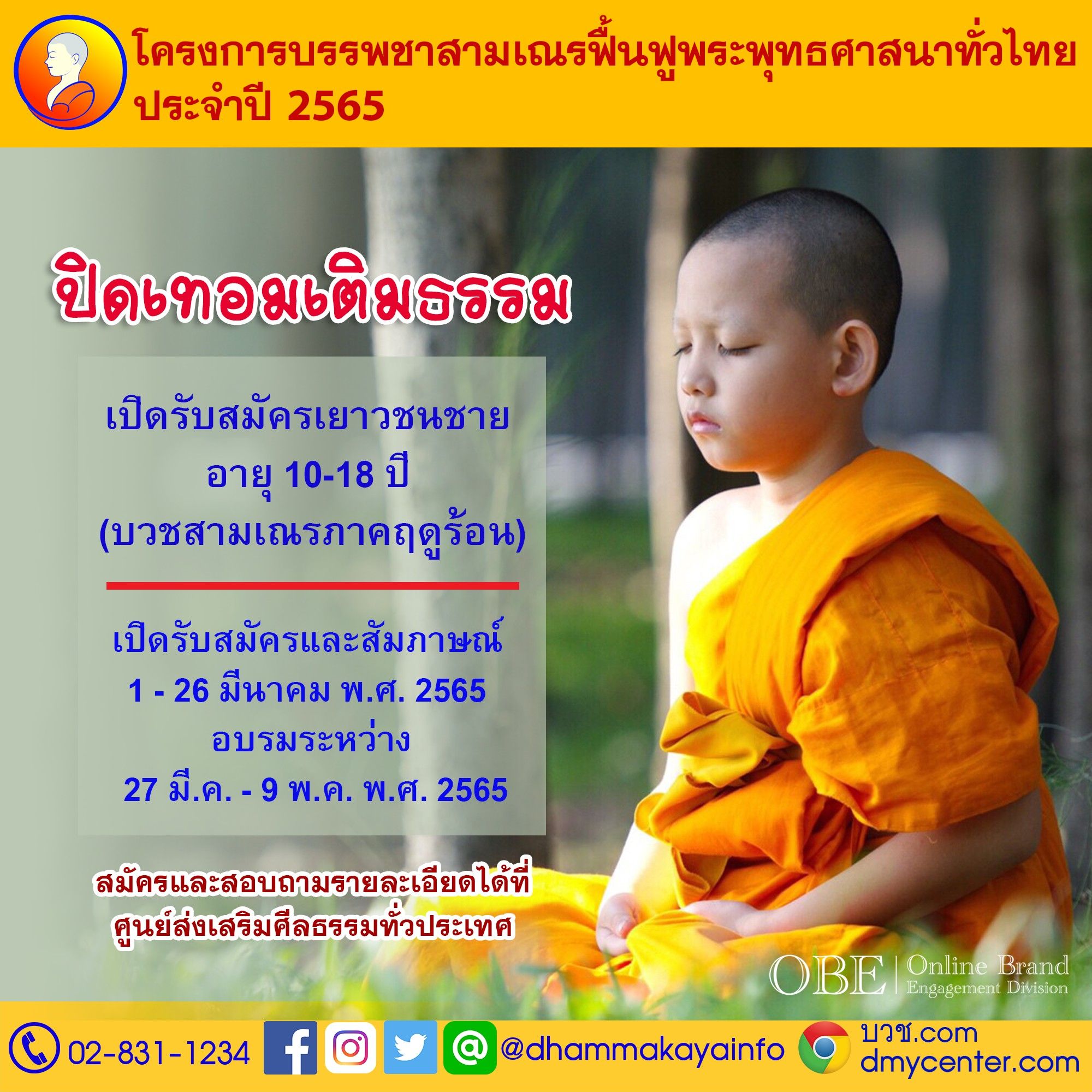 โครงการบรรพชาสามเณรฟื้นฟูพระพุทธศาสนาทั่วไทย ประจำปี 2565