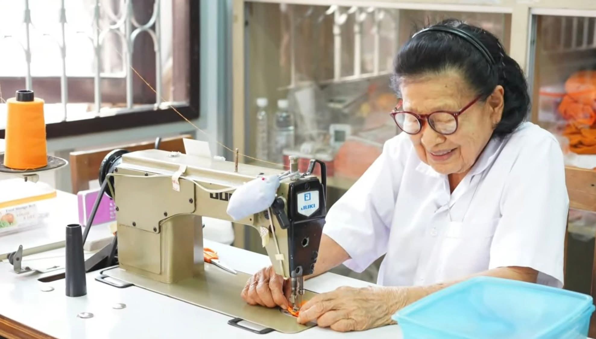 โยมป้าผู้เย็บ ซ่อมแซมผ้าไตรจีวร ของพระวัดพระธรรมกาย