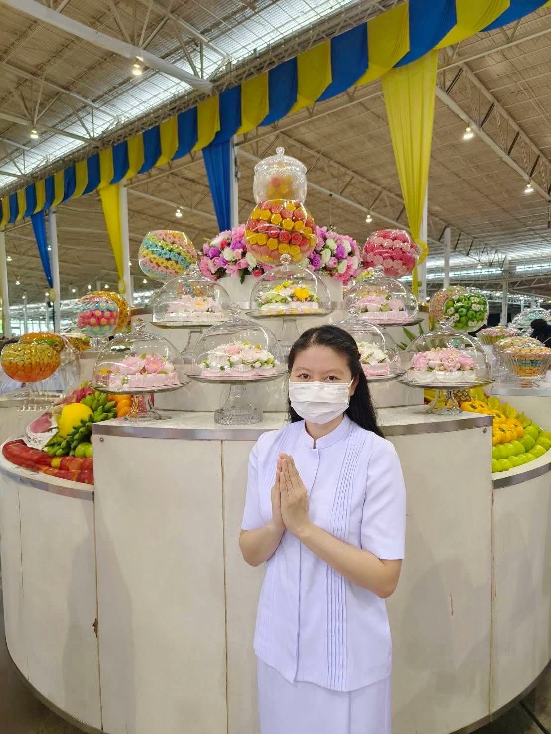น้อมถวายเค้กดอกกุหลาบขาวชมพูอันประณีตเป็นพุทธบูชา ขึ้นแท่นประกอบพิธีบูชาข้าวพระต้นเดือนสิงหาคม 2567 น้อมนำบุญนี้มาฝากทุกท่านค่ะ