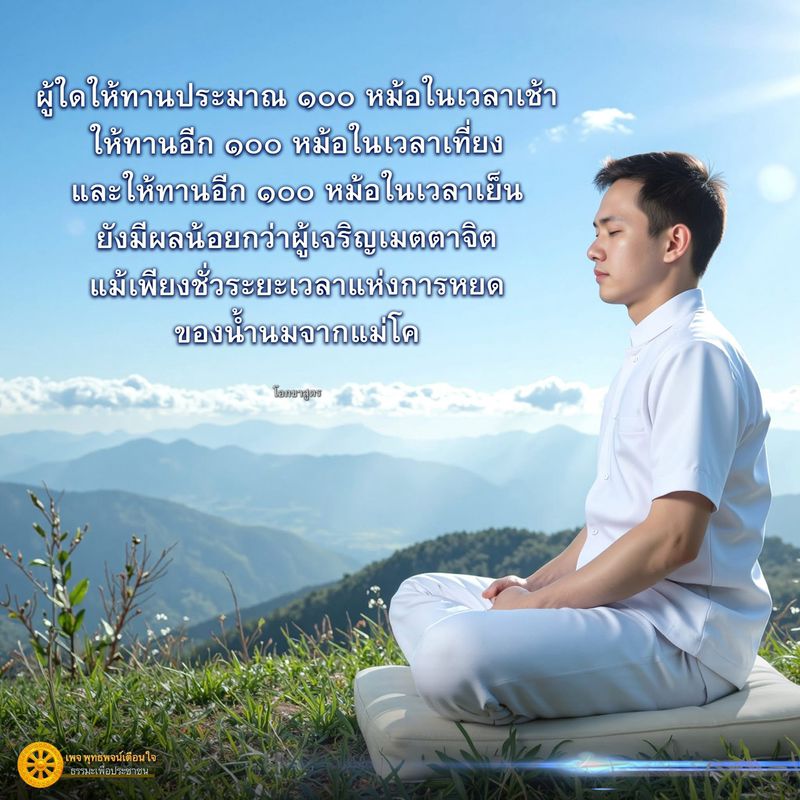 การให้ทานเป็นบุญใหญ่ แต่พระพุทธเจ้าตรัสว่า แม้เพียงชั่วขณะที่เรามีจิตเมตตา ก็มีอานิสงส์มากกว่าการให้ทาน เพราะการให้ทานช่วยผู้อื่นได้ครั้งหนึ่ง แต่การเจริญเมตตาเปลี่ยน “คุณภาพของใจ” เราไปเลย