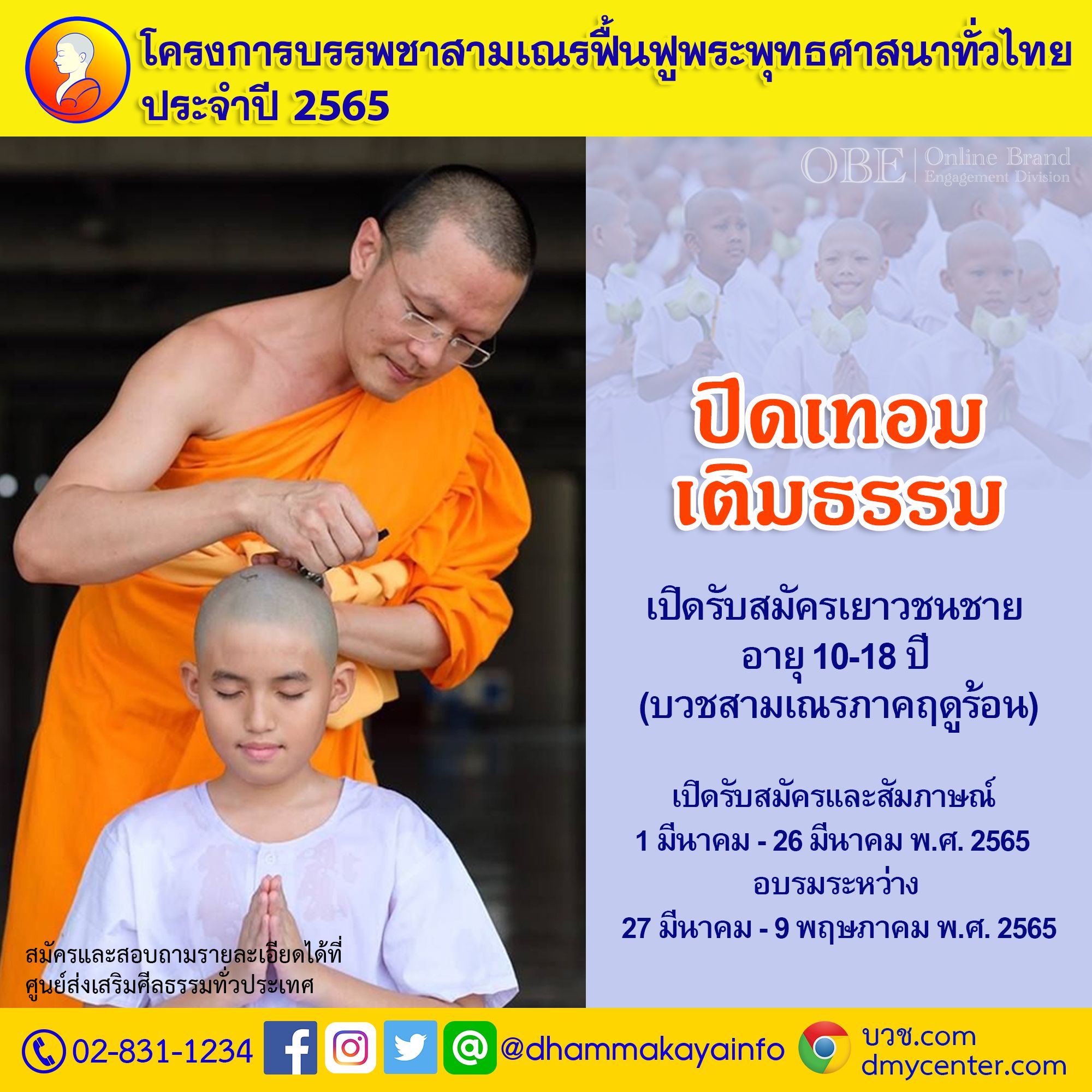 เปิดรับสมัครเยาวชนชาย อายุ 10-18 ปี (บวชสามเณรภาคฤดูร้อน)
