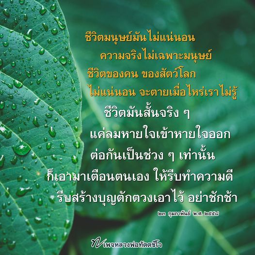 ชีวิตมนุษย์มันไม่แน่นอน ความจริงไม่เฉพาะมนุษย์ ชีวิตของคนของสัตว์โลกไม่แน่นอน ตายเมื่อไหร่เราไม่รู้ อย่าคิดว่ามนุษย์จะอายุยืน ตั้ง ๗๐ ๘๐ ๙๐ ปี