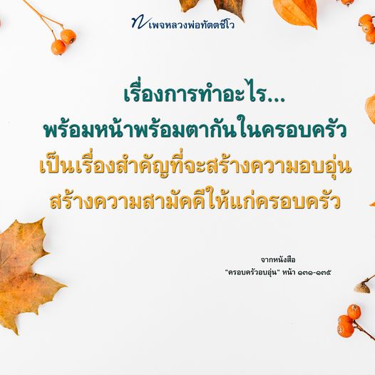 เรื่องการทำอะไรพร้อมหน้าพร้อมตากันในครอบครัว เป็นเรื่องใหญ่ และเป็นสิ่งที่จะสร้างความอบอุ่น สร้างความสามัคคีให้แก่ครอบครัว อย่าคิดว่าไม่มีอะไร เพราะหลายครอบครัวก็พังกันด้วยเรื่องเล็ก ๆ น้อย ๆ เหล่านี้กันมาแล้ว