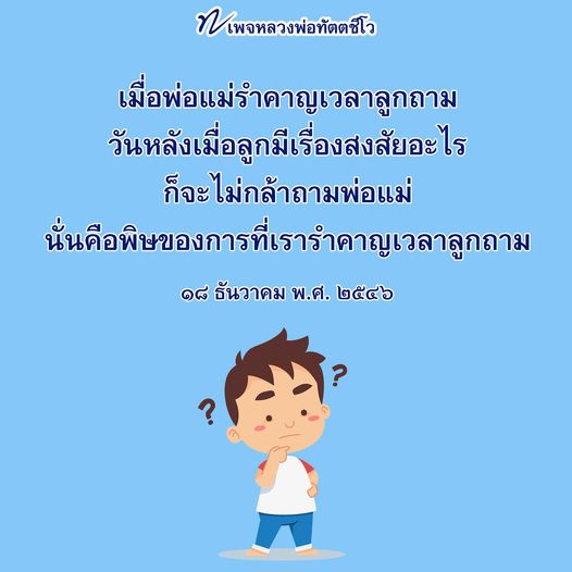 ใครที่กำลังมีลูกเล็ก ๆ อยู่ อยากให้ลูกมีปัญญา แต่แทนที่จะเสริมลูก เรากลับไปห้ามลูกเสีย ใครที่วันนี้รู้สึกว่า เอ๊ะ ลูกเราเดี๋ยวนี้ชักจะไม่ค่อยอยากรู้อยากเห็น หรืออยากรู้อยากเห็นแต่ลูกไม่ค่อยถามเรา ลูกไปถามใครก็ไม่รู้ รับทราบไว้ด้วยนั่นคือพิษของการที่เรารำคาญเวลาลูกถาม