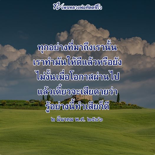 ย้อนดูตัวเอง ใครทำอะไรก็รู้ตัวอยู่แล้ว ว่าทุกอย่างที่มาถึงเรานั้น เราทำมัน the best แล้วหรือยัง ถ้ายัง ก็ไปทำให้มันดี ไม่งั้นเมื่อโอกาสผ่านไป แล้วเดี๋ยวจะเสียดายว่า รู้อย่างนี้ทำเสียก็ดี