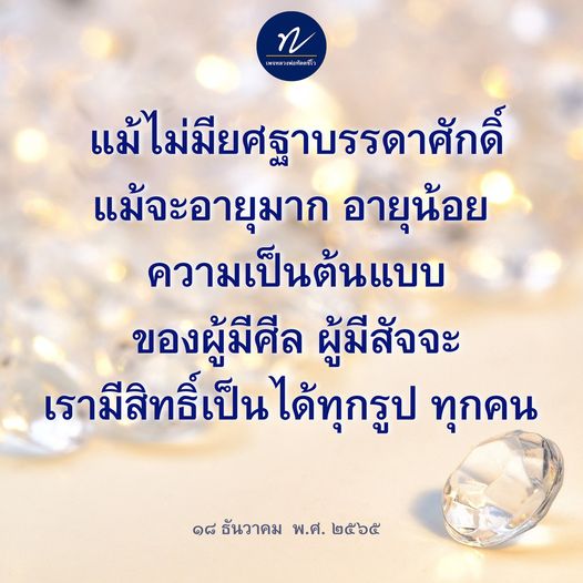ถึงแม้จะอายุมาก อายุน้อย ความเป็นต้นแบบของผู้มีศีล ผู้มีสัจจะ เรามีสิทธิ์เป็นได้ด้วยกัน อย่างสมบูรณ์ทุกรูป ทุกคน
