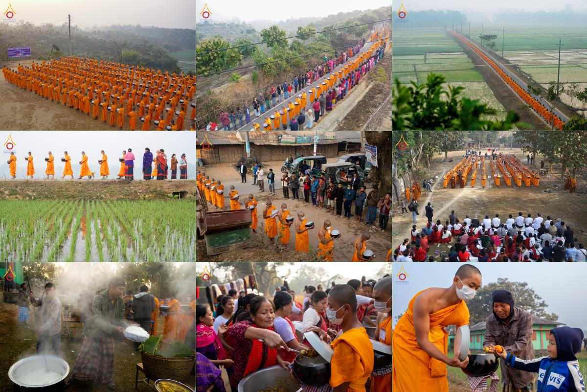 คณะสงฆ์และสามเณรบิณฑบาต