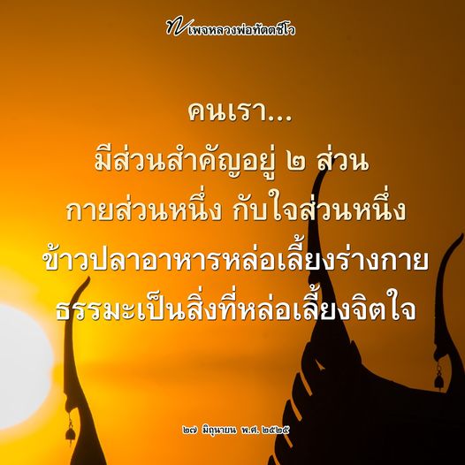 มีข้าวปลาอาหารเลี้ยงกายแล้ว แต่ว่ายังไม่มีอาหารใจ อยู่ไม่ได้หรอก เดี๋ยวก็มีเหตุให้เป็นไป ไม่มีอาหารใจเลี้ยง ใจมันก็หิว พอใจมันหิวเข้าแล้วล่ะก็ มันยิ่งกว่ากายหิว กายหิวน่ะตักข้าวเข้าปากก็อิ่ม แต่ใจพอหิวขึ้นมาล่ะก็ มันไม่เท่านั้น ใจหิวมันหิวอะไรล่ะ มันโลภขึ้นมานี่ มันอยากได้ยศถาบรรดาศักดิ์ อยากได้ตำแหน่งขึ้นมานี่ มันชักยุ่ง พอหิวขึ้นมาอาการของใจหิว มันออกไปอย่างนั้น